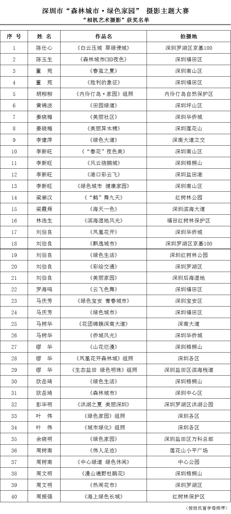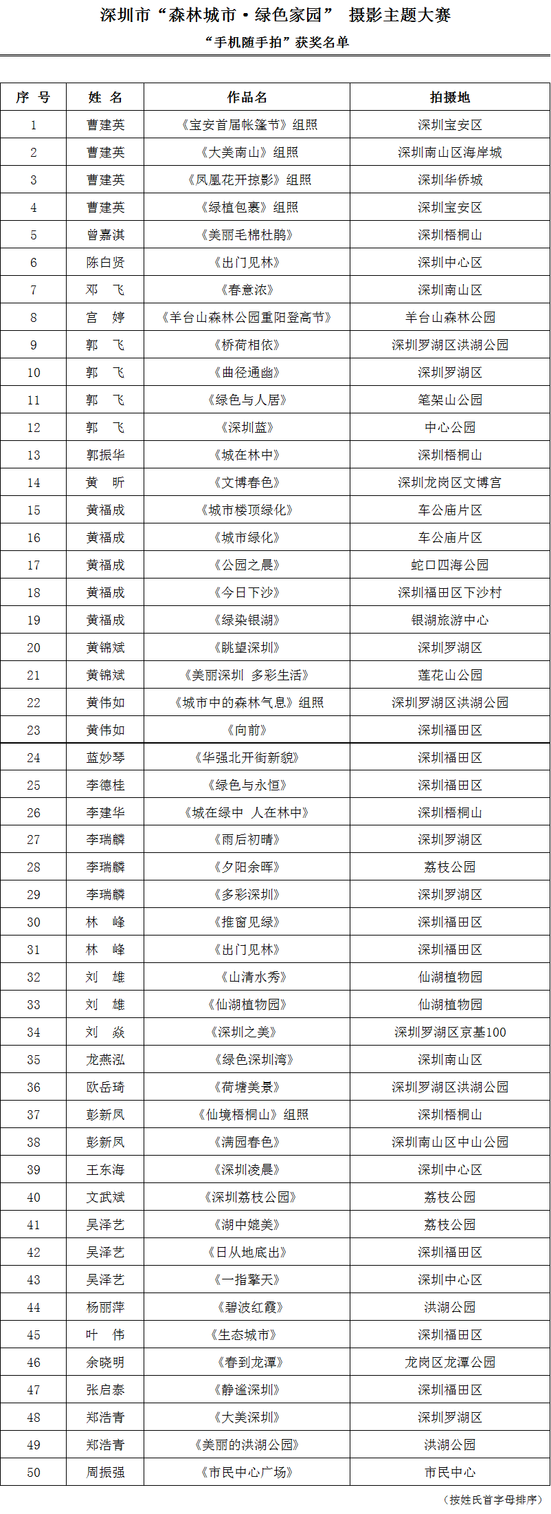 由深圳市城市管理局(林业局)主办,深圳市创建国家森林城市工作领导小组办公室和深圳市民俗摄影学会联合承办,历时2个多月的深圳市“森林城市·绿色家园”摄影主题大赛于近期圆满落下帷幕。经过专家评审,从众多参赛作品中评选出反映深圳森林城市建设成就和城市生态文明风貌的“相机艺术摄影”优秀作品40幅,“手机随手拍”优秀作品50幅,将代表深圳市参加全国比赛。