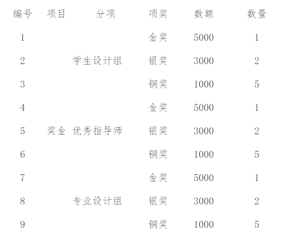 2.专业设计组:设金奖1名、银奖2名、铜奖5名、优秀奖20名。