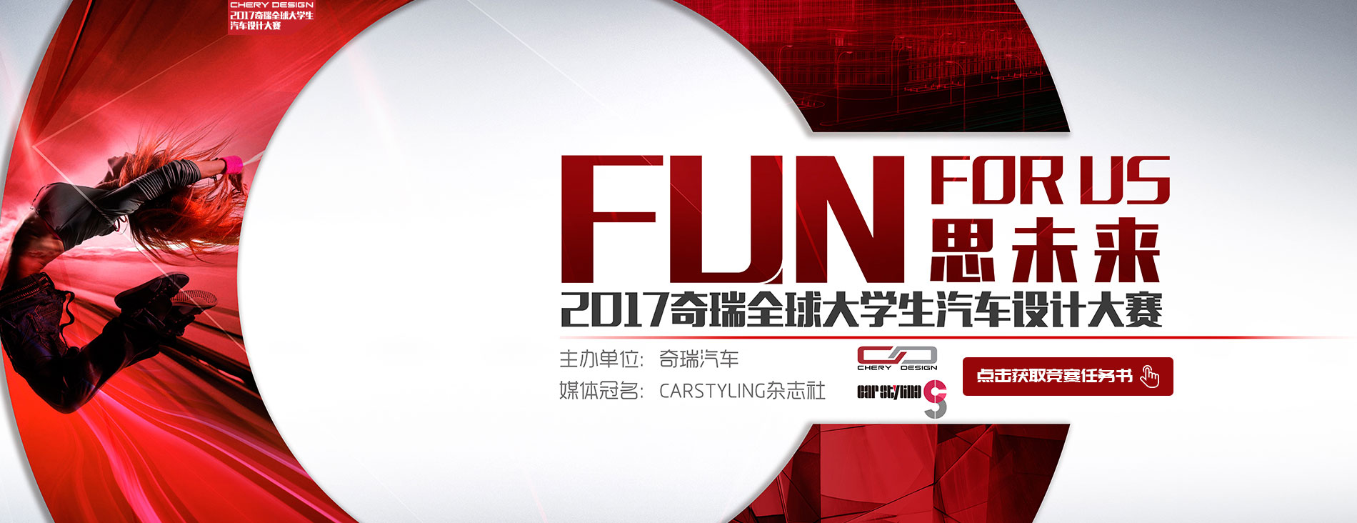 本届大赛主题:“FUN FOR US”—奇瑞愿与年轻的你一同“FUN . 思未来”。