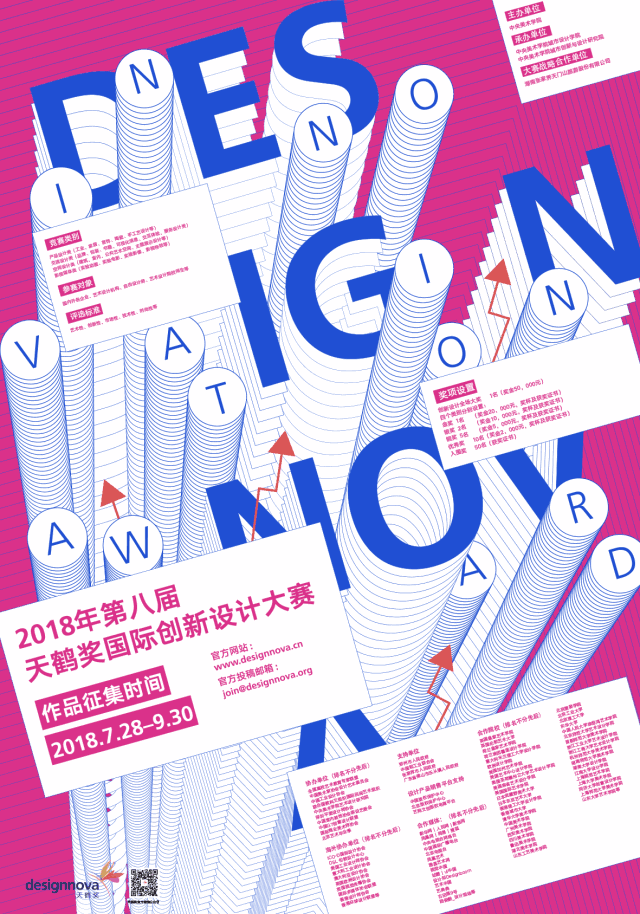 2018年第八届天鹤奖大赛,征稿时间于 2018年7月28日正式启动,截止时间为2018年9月30日。大赛征集作品涵盖交流设计、产品设计、空间设计和影视媒体类设计四大类别,并将于2018年11-12月举办2018年第八届天鹤奖国际创新设计获奖作品展暨2018“DESIGNNOVA设计之星”颁奖盛典、“天鹤奖”国际创新设计与中国制造论坛(佛山)以及2018“天鹤奖”国际创新设计获奖作品巡回展(张家界、佛山)等系列活动。诚挚邀请海内外设计机构、院校师生、独立设计师、中外生产、贸易和服务性企业参赛!