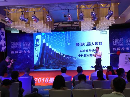 新闻发布会上,新松机器人集团副总裁、中科新松有限公司总裁杨跞先生对大赛给予了肯定,并对大赛的参与单位予以感谢。各单项奖联合发布会单位从对招募项目的期许、如何评判这些项目、获奖项目能够获得哪些福利等方面做了发言。北京航空航天大学机器人研究所名誉所长、IEEE机器人与自动化北京大区主席王田苗教授、北科大工业设计系系主任覃京燕教授、臻云创投合伙人祝晓成先生分别作为技术、设计、商业评委代表被授予证书。随着前三年大赛精彩瞬间的展现,预示着星创师大赛即将翻开新的篇章。嘉宾们一齐推动启动杆,将新闻发布会推向了高潮,宣告2018星创师大赛正式启动。在新闻发布会的最后,往届星创师大赛的优质项目进行了路演和产品展示,路演项目得到了大家的一致认可,赢得了热烈而持续的掌声。