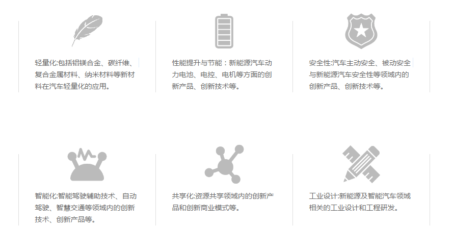 本次大赛主要面向国际新能源及智能汽车行业前景良好的初创型企业,从事新能源及智能汽车领域的高新技术产品研发、制造、生产、服务及商业模式等方面的创新项目。参赛项目须有一定基础和前景,有成长性,有完整的商业计划书和产品雏形。