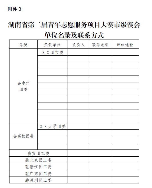 3.湖南省第二届青年志愿服务项目大赛市级赛会单位名录及联系方式