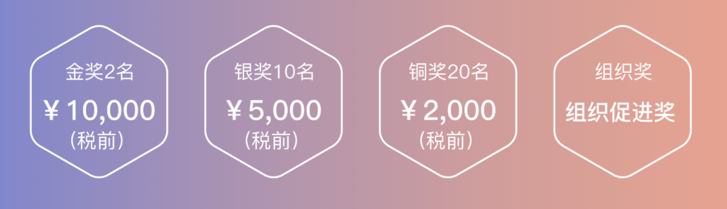 1、本届大赛设置金、银、铜 奖及组织奖。大赛评选金奖2名左右,奖金每位10000元(税前);银奖10名左右, 奖金每位5000元(税前);铜奖20名左右,奖金每位2000元(税前)。