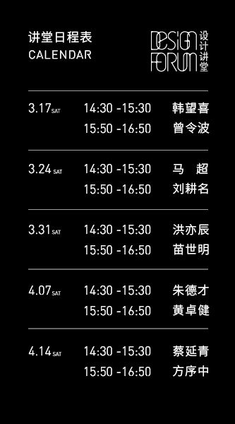 设计讲堂作为深圳设计周重要项目之一,将于2018年3月17日至4月14日的每周六在海上世界文化艺术中心举办。紧扣深圳设计周2018年度主题“设计的可能”,设计讲堂试图撬开观众的大脑,往里植入超维度思维芯片,灌满不惧创新燃料,去发现和探索更多维度的设计观点、创新手法、实践载体、应用场景和组织方式。