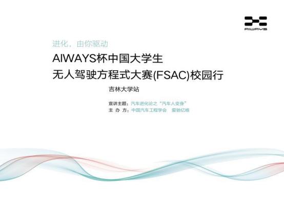 另据悉,首站AIWAYS杯大学生无人驾驶方程式大赛校园行吉林大学站将于9月24日在吉林大学南岭校区举办,活动以【汽车进化论之“汽车人变身”】为主题,面向汽车工程以及相关专业学生传递行业发展趋势、技术发展方向等最新信息。并诚邀吉大校友回母校,畅谈明日车势。