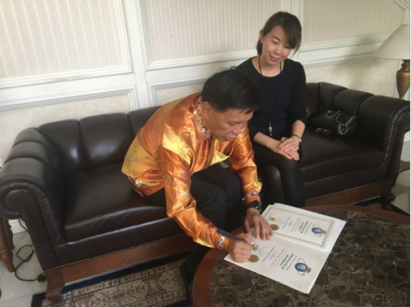 图2:Miss Global Tourism Pageant国际机构主席AIEX LIU先生在授权书上签名