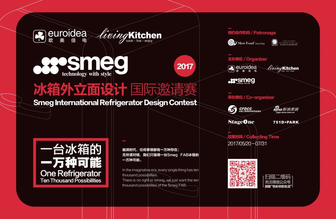 继Smeg家电与国际知名品牌Dolce&Gabbana跨界合作后,家用电器从此被赋予了无限的时尚的元素和价值,该系列的100台限量冰箱推出后,就受到全球热捧。作为Smeg在中国的唯一官方授权销售和服务提供商,欧美佳电(Euroidea)通过此次设计大赛,征集具有中国元素的冰箱外观设计,让跨界设计变得无限可能,让中国元素走向世界。最终胜出的设计作品,将被意大利Smeg公司进行生产,推出限量版的中国版Smeg冰箱。